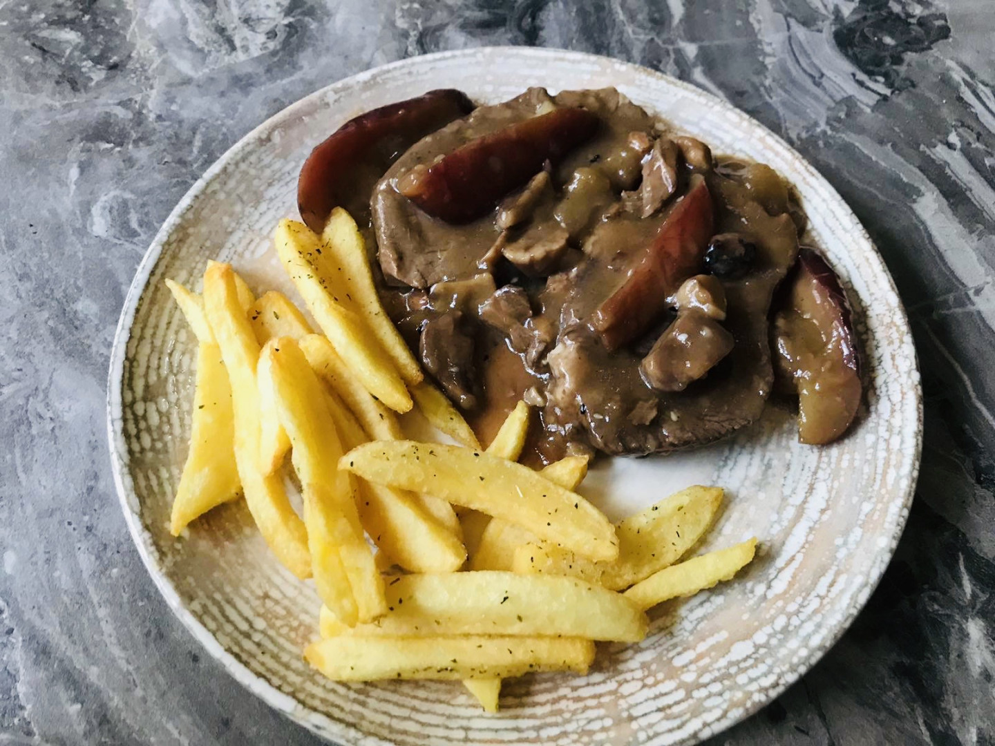 χοιρινο με μουσταρδομελο καραμελο καροτο
